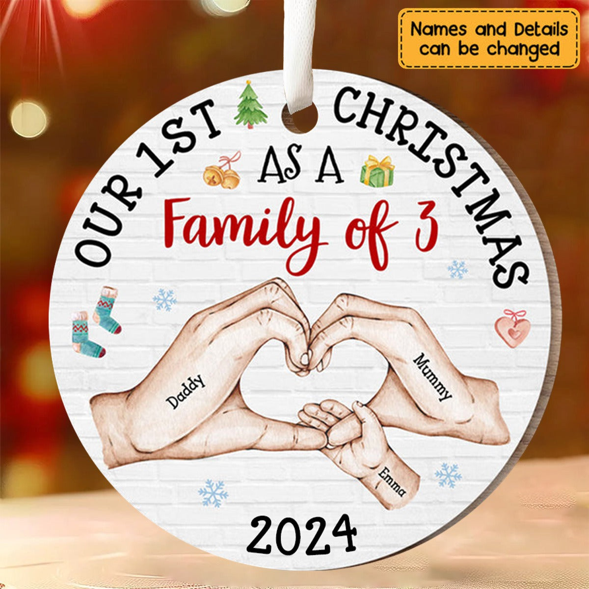 Our First Christmas As A Family Circle Personalized Wooden Ornament