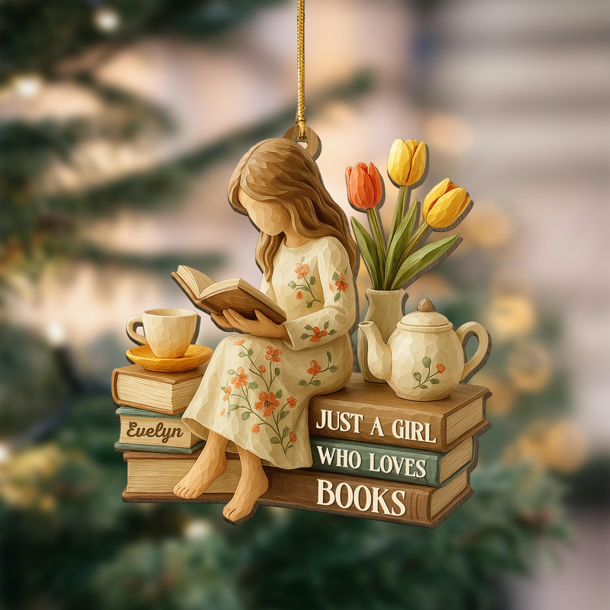 Personalized Just A Girl Who Loves Books Ornament, Gift For Book Lover