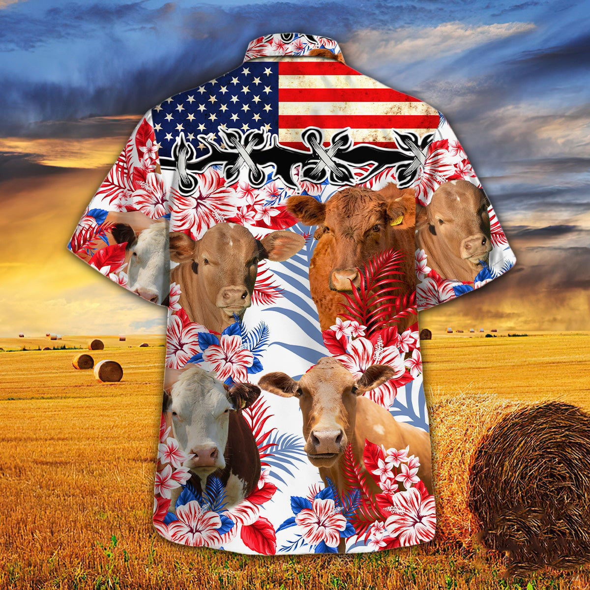 Beefmaster Cattle In American Flag Patterns Hawaiian Shirt