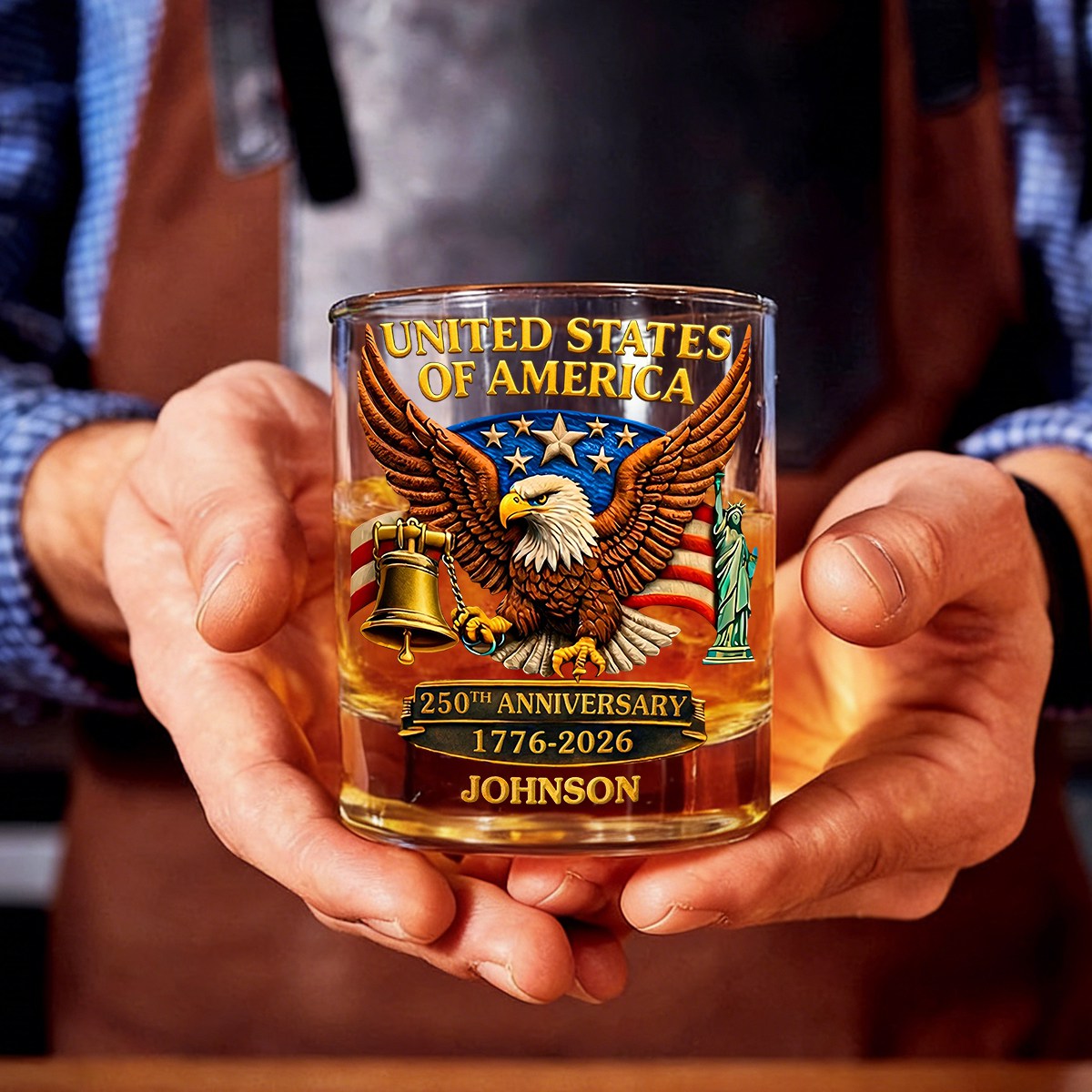 Custom United States 250th Anniversary Whiskey Glass,American Eagle Bell Patriotic Gift