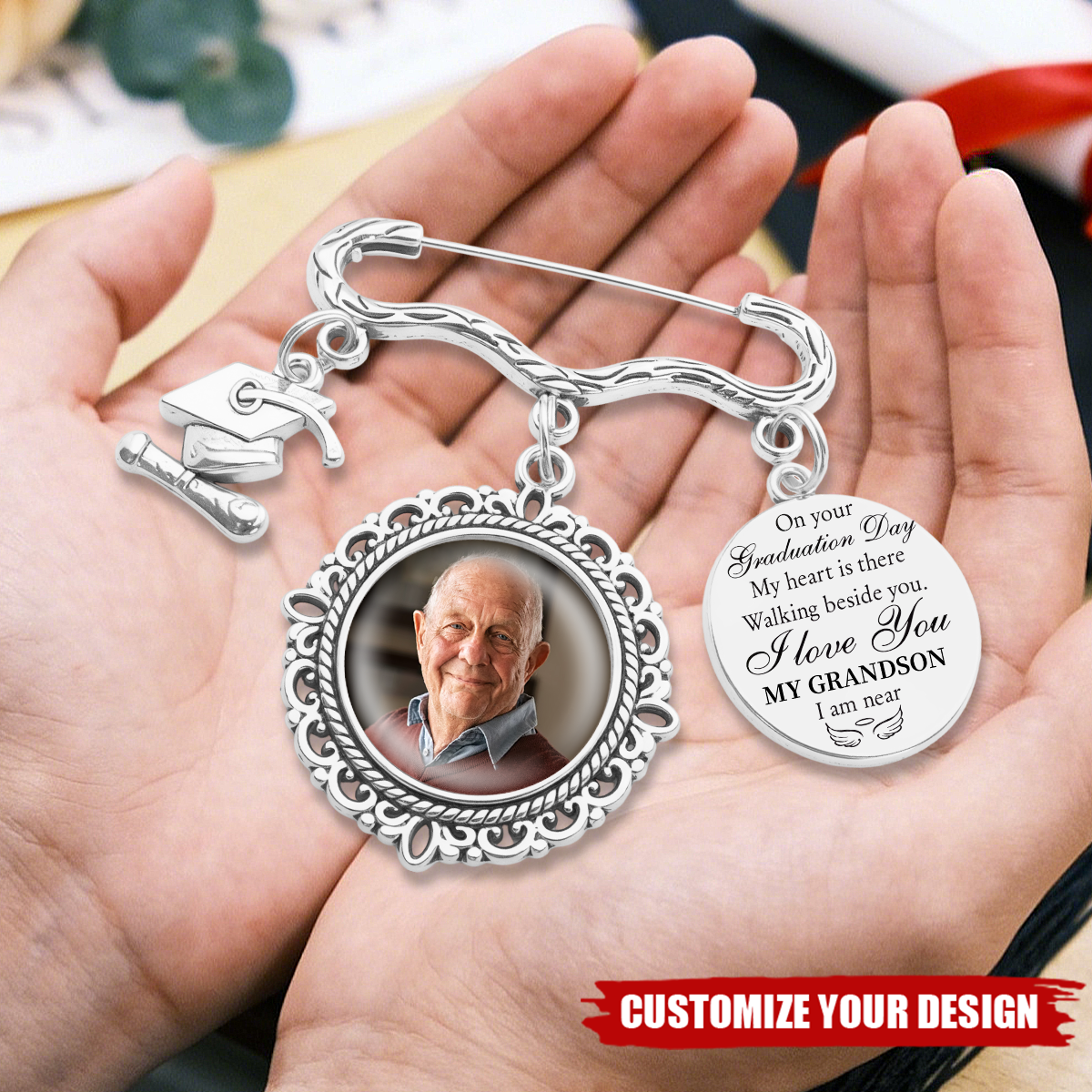 This Handmade Custom Memorial Pin, is a unique and personalized gift for him on Graduation Ceremony. Keep the memory of your loved one close to you on graduation day, witness this special milestone. This pin can be worn on your graduation gown.