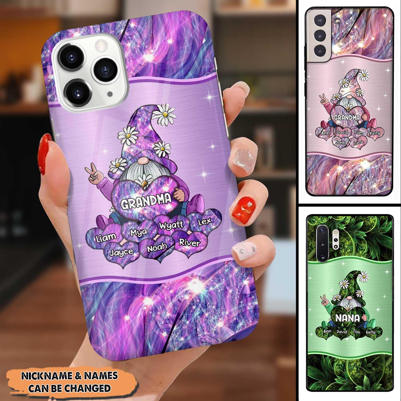 Sparkling Colorful Grandma- Mom With Sweet Heart Kids Personalized Glass Phone Case